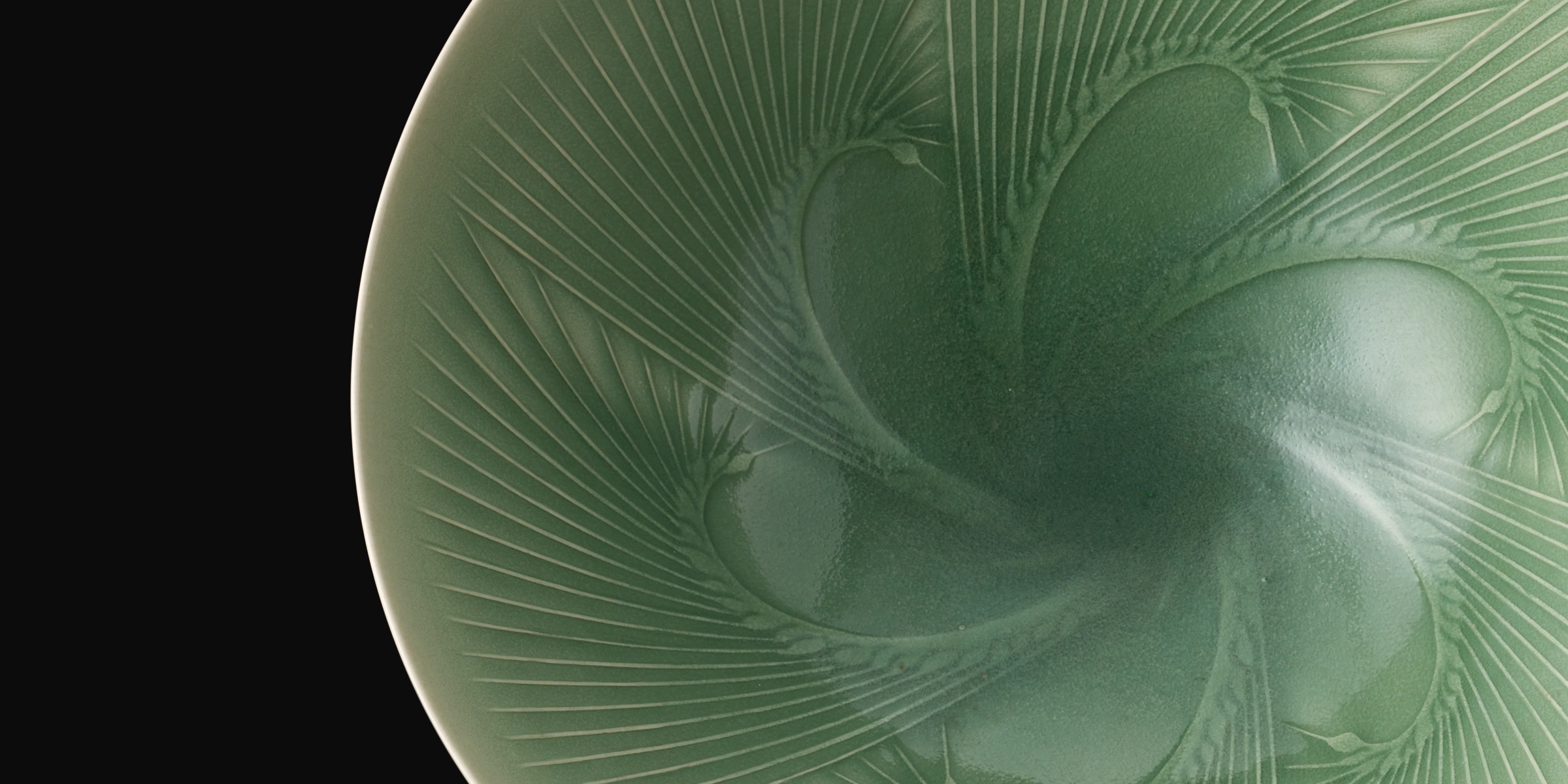 初期は天目を作陶、その後は青磁に取組み、公募展は日本伝統工芸展(26回入選)を中心に出品している。耀州窯(中国 宋時代)の作品を手本に主に制作し、独自の貼り付け文様に取組み、草花等をデザイン化し作陶している。