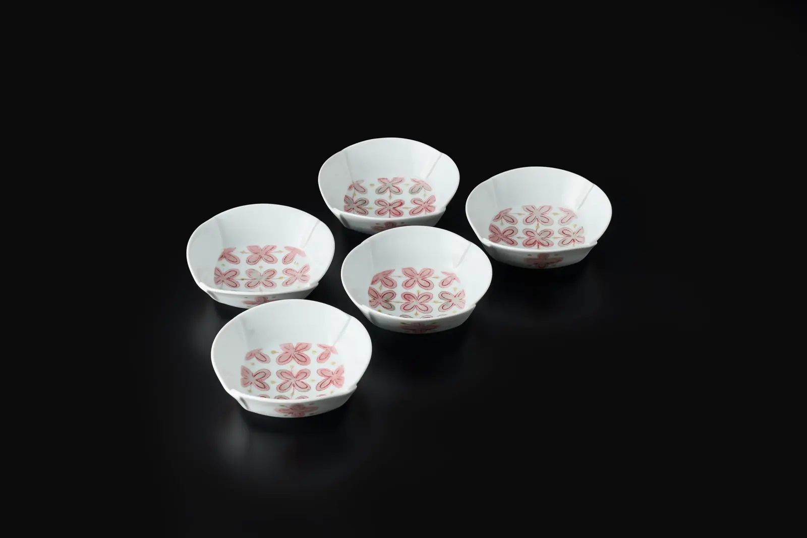 釉裏紅四つ花文切り継ぎ小鉢揃